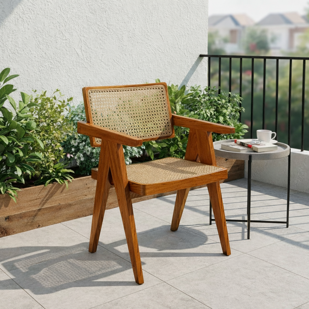 Nero Cane Armchair bukan sekadar kursi duduk, tetapi juga elemen dekoratif yang memperkuat estetika ruang. cokelat kayu jati yang netral memudahkan kursi ini dipadukan dengan berbagai gaya interior maupun eksterior, mulai dari modern minimalis, industrial, hingga japandi tropis.